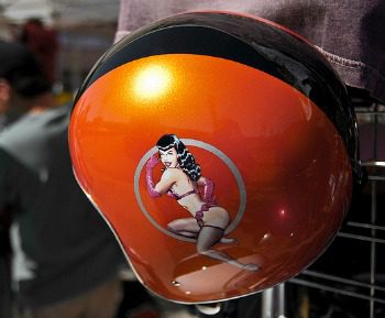 The automotive world and that of motorcycles also enjoys the image of the female Pinup, the helmet being one of the most popular places to put one next to the side of the gas tank.
