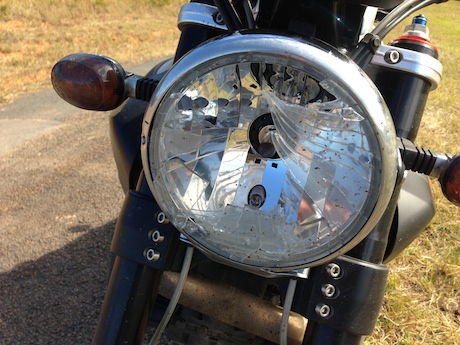 And don’t be fooled into thinking it is only adventure bikes that are susceptible to copping a rock in the lamp. In fact, the two times I’ve broken a headlight have been on tar roads on a road bike.