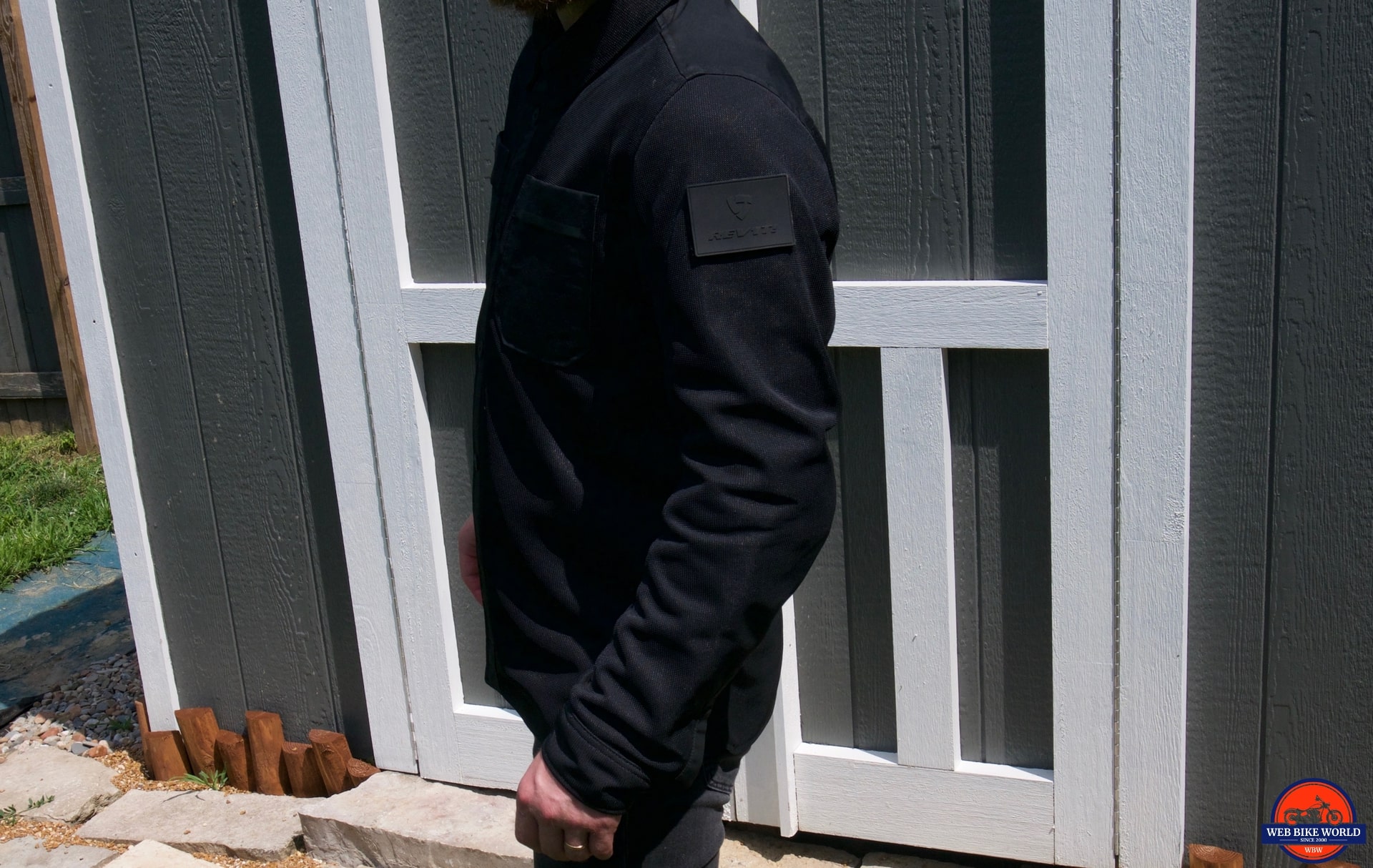 I’m a big fan of gear that doesn’t scream motorcycle gear, so the Tracer air Overshirt’s design speaks to me. It’s simple, and more or less looks like any other casual workwear overshirt you’d find. There are a few small giveaways, though.