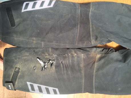 I am so impressed with the performance of the Rukka pants that took the brunt of the fall and slide I returned them to the Australian agent with a letter of appreciation. If you went to the Rukka/Innotesco stall at the World Superbikes, you would have seen my pants on display.