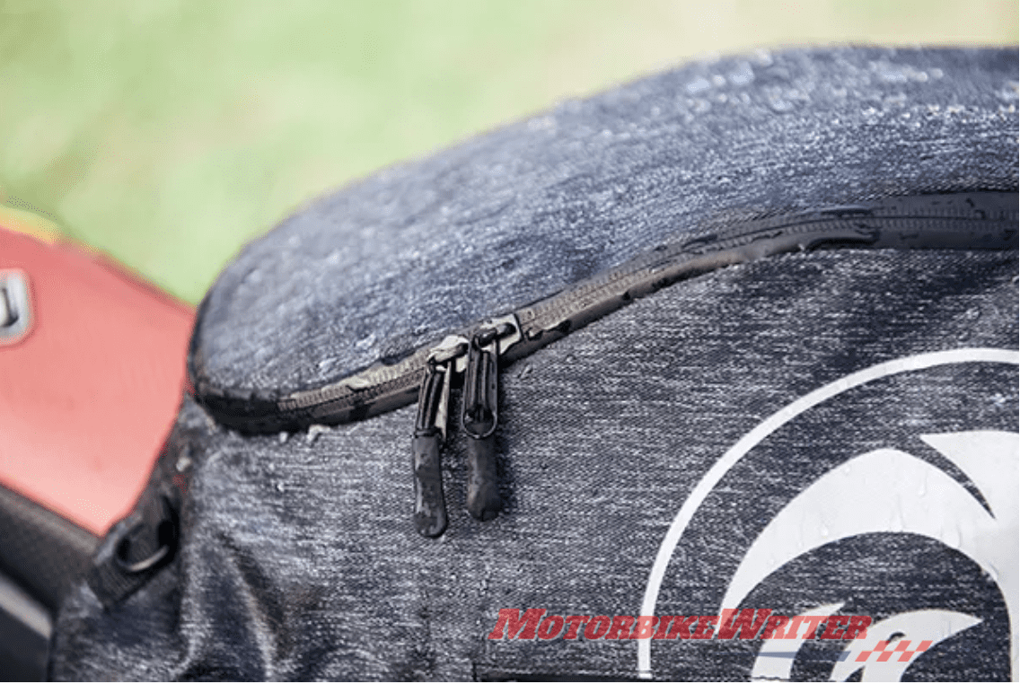 “I have yet to find a backpack that is water resistant, water bladder ready, utilises strap tidies, has a helmet holder, and is reflective – all great aspects that should be the norm for motorcycle backpacks.”