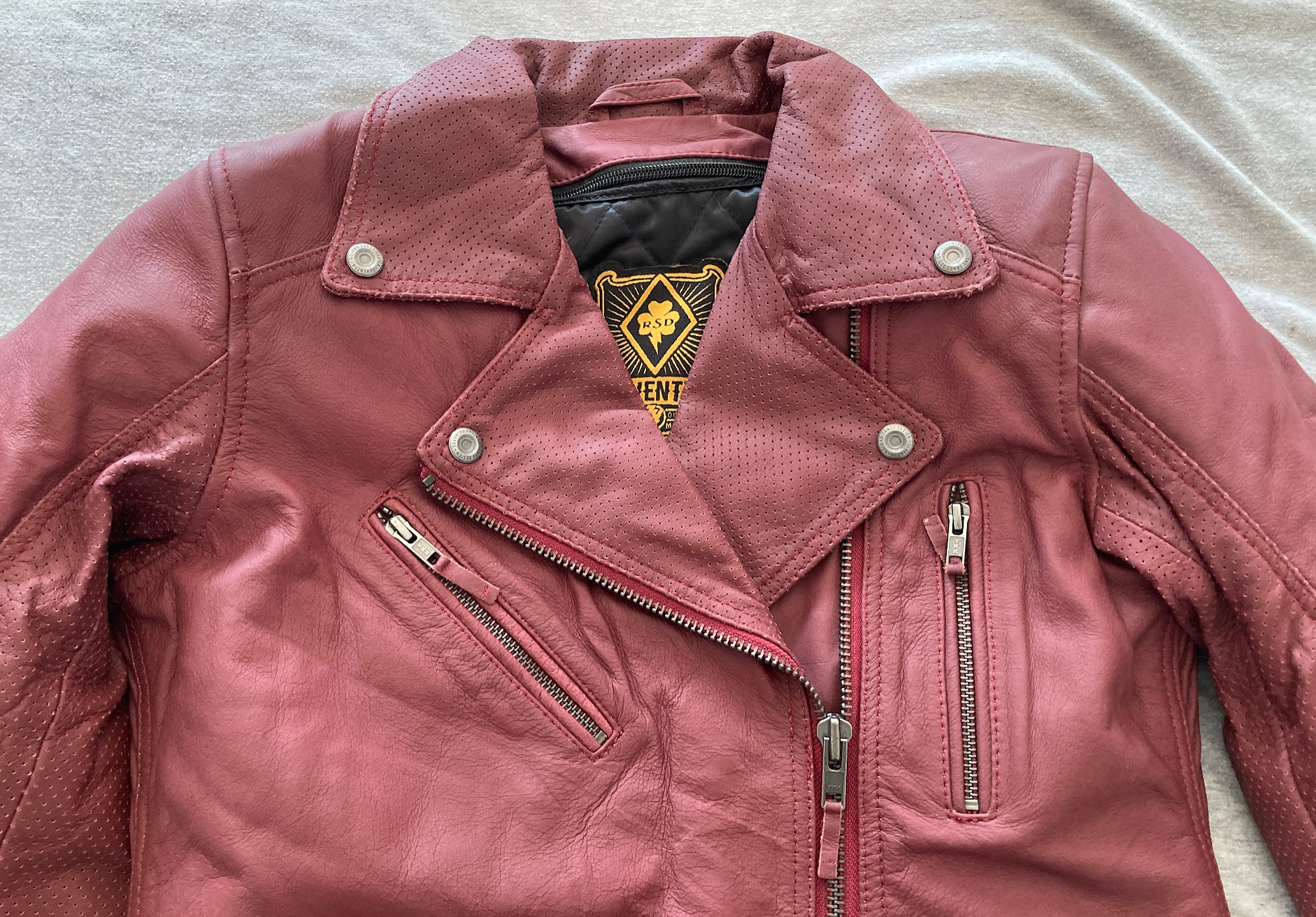 I have the Atherton jacket in the merlot and I absolutely love the color, it’s a rich dark red and looks beautiful on.