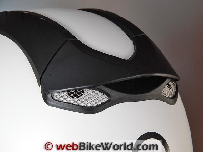 The top vents can make a wind rushing noise, depending upon the angle of attack, although they seem to quiet right down when the head is tilted forward slightly, as it is when riding a sport-touring or sportbike.