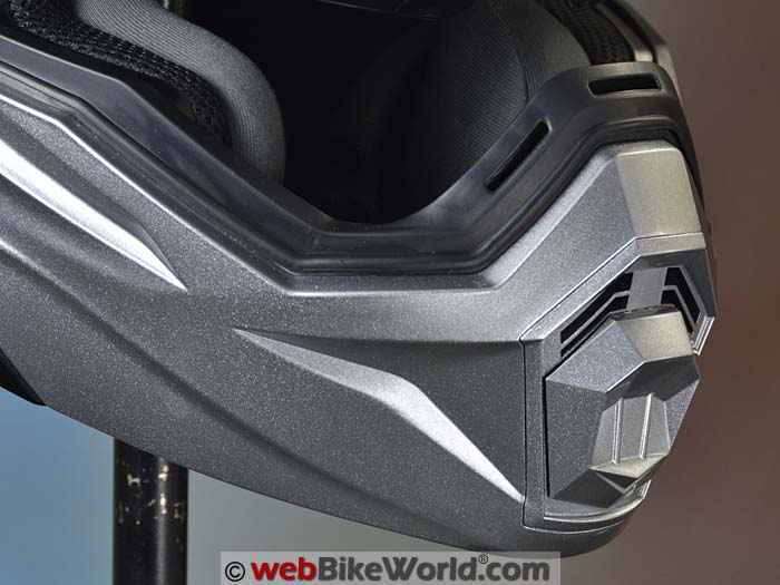 The chin vent is a large vertical slider that’s very easy to locate when wearing gloves. It brings air in through a horizontal slot, located in the back of the chin bar.