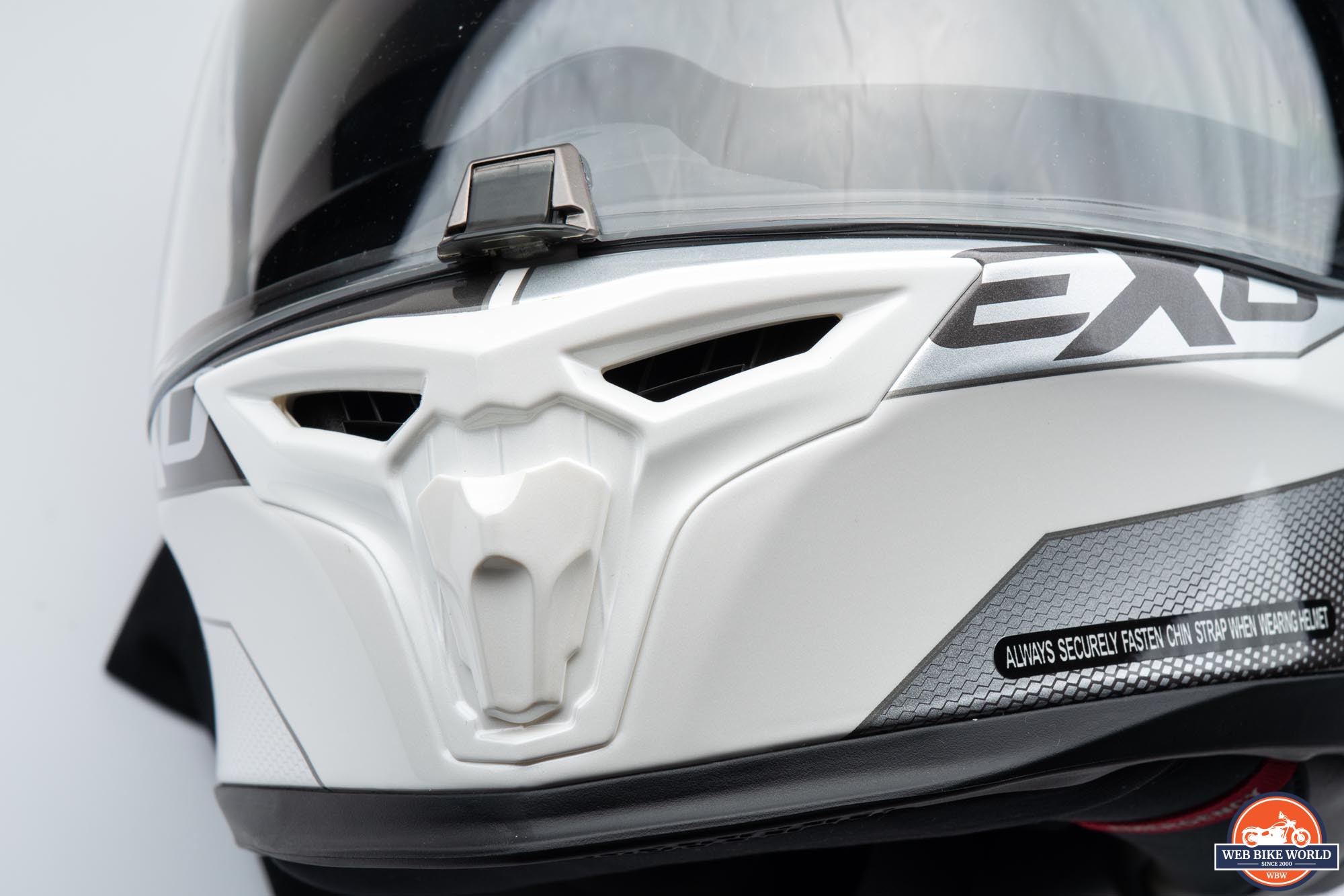 The cheek pads and liner are completely removable for cleaning and this is also necessary for installing the EXO-COM® bluetooth system which we’ll look at shortly. A chin curtain is supplied and installed by default and it is removable if one desires more airflow from under the chinbar.
