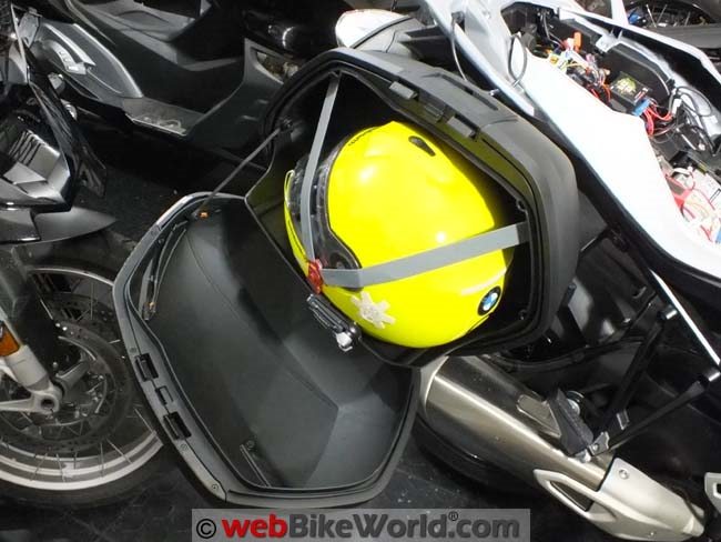 This deck, along with the included three-point elastic strap inside the SH36, minimizes the tendency of stashed luggage to topple out or shift when the side-mounted case lid is opened.