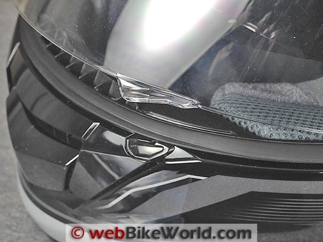 The top of the face shield is molded with an inward-curving bend to help keep the Pinlock from interfering with the dual eye port gasket seal as the face shield is raised or lowered.