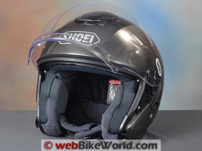 The shell is fairly stiff, so there’s not as much play or stretch as there might be in some of the less expensive open-face helmets. So if you’re on the borderline, we’d suggest ordering according to the Shoei size charts.