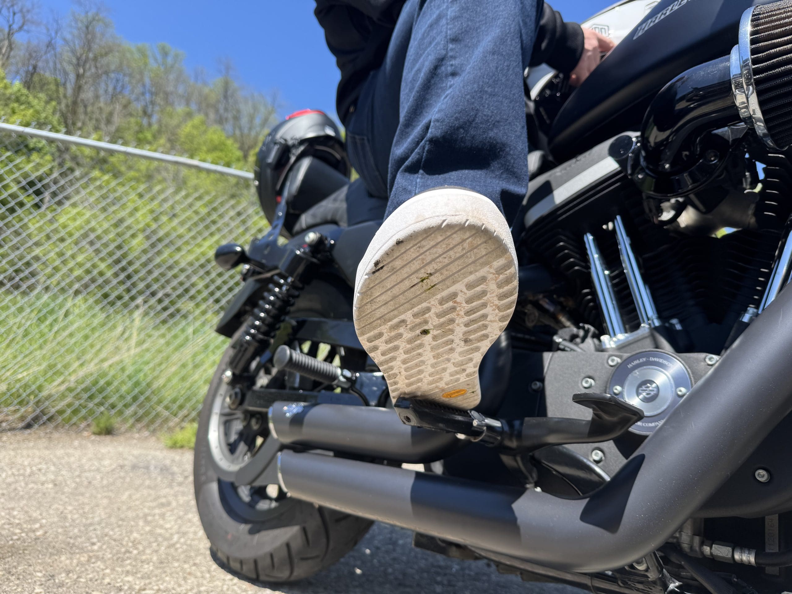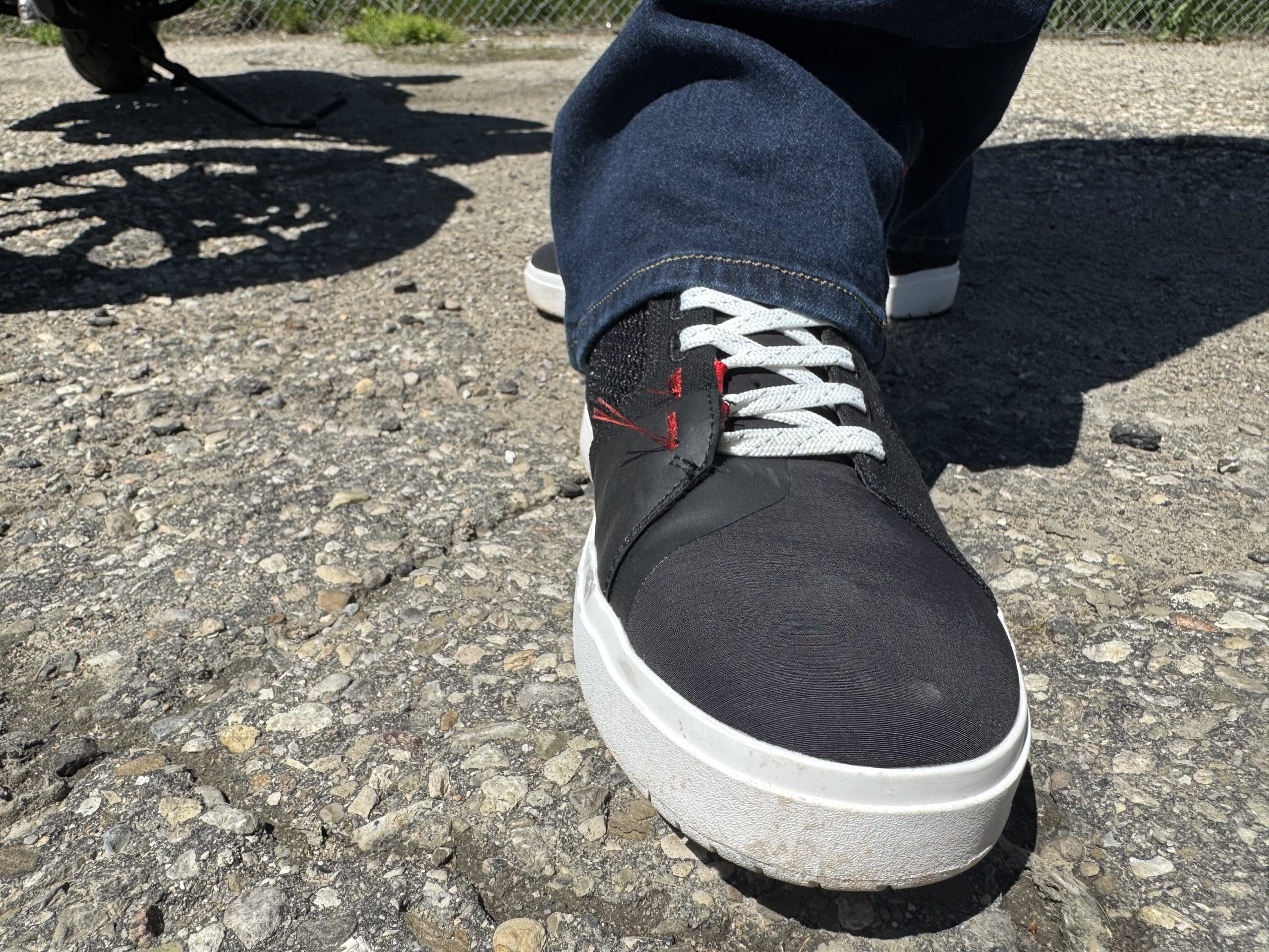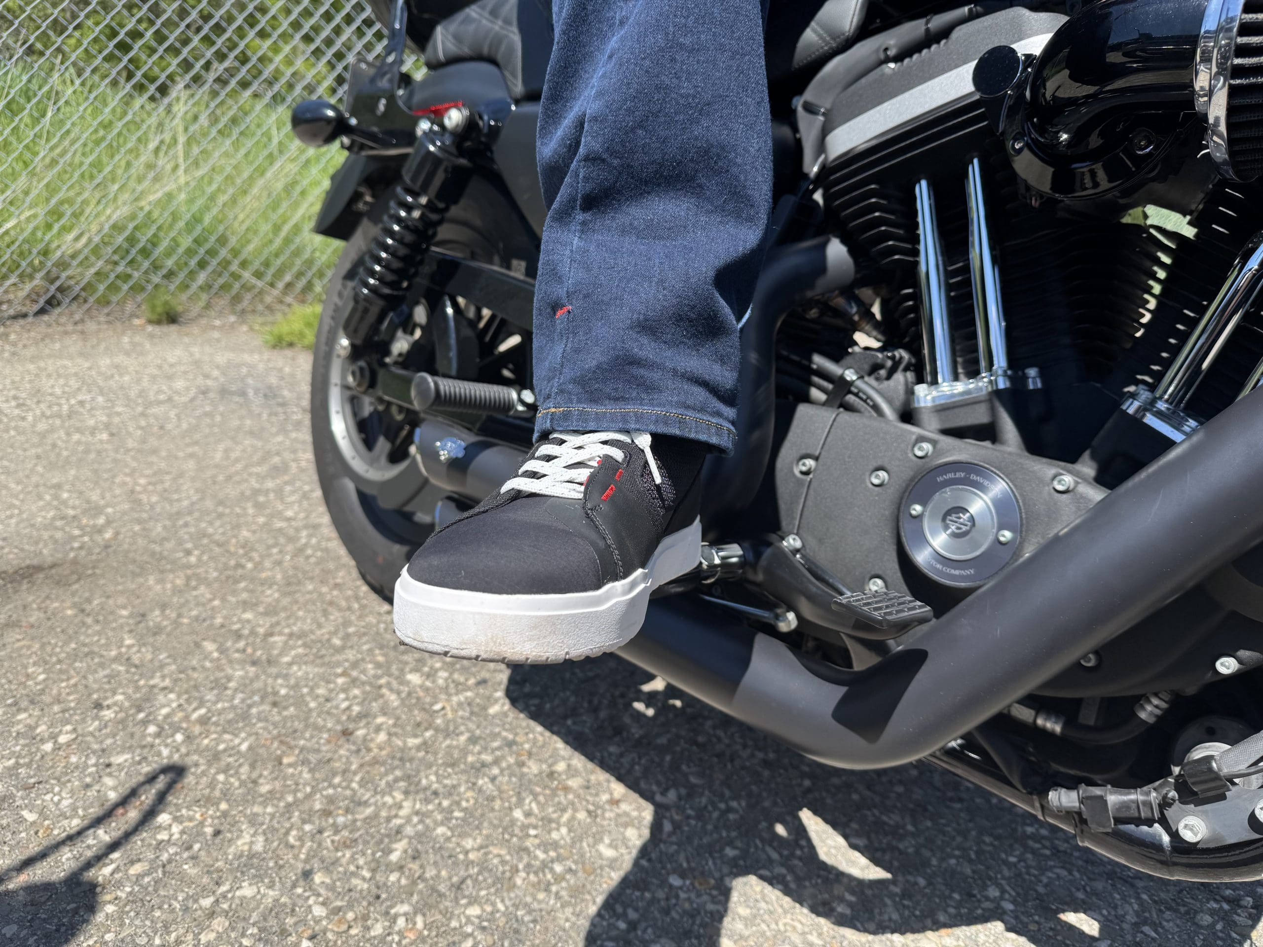 The black ARX shoes are 100x easier to keep clean than the white Spidi XPD Moto-1 shoes I reviewed in 2023 (who would’ve thought?). At the time, I was stoked to have found a white pair of riding shoes, but I quickly realized they’re so hard to come by – they get destroyed by the shifter.