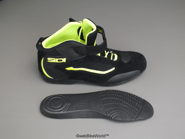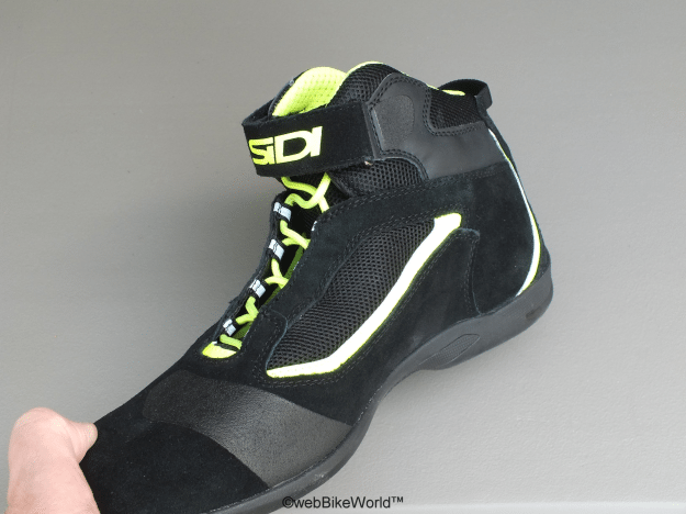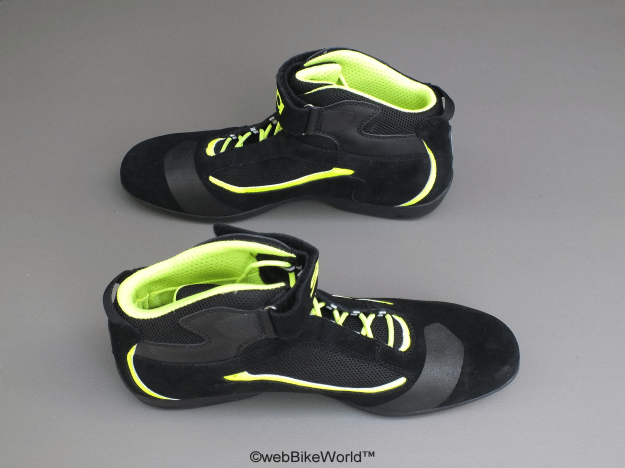 For on motorcycle use the thin rubber layers over the shift pad areas on both shoes serve to minimize wear and protect the suede finish, although the rubber inserts could be a bit wider to accommodate foot-peg positioning and shifters.