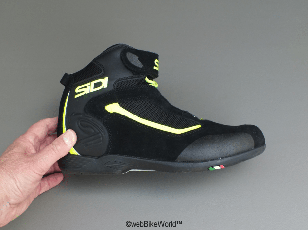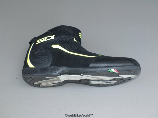 The shaped rubber soles provide good support and grip on and off the motorcycle and are attractively styled with two-tone detailing and a special outer edge insert showing the three colours of the Italian flag – nice.