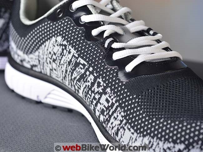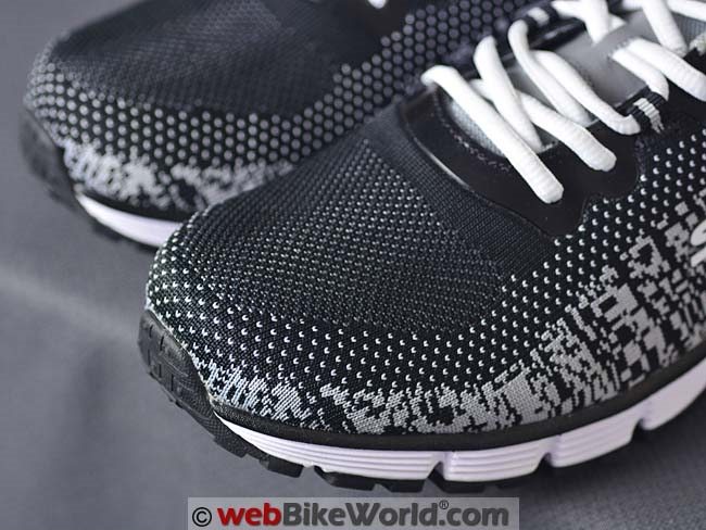 The most interesting and different feature is the one-piece knit uppers, which has the pattern built into the knit via a computer-controlled knitting machine.
