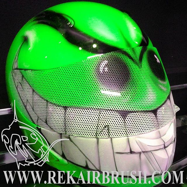 These are just a few great designs and some incredible fun motorcycle helmets to ride around in. So where exactly do you get one? Well I know of 2 great Airbrusher’s to check out: Here are some great smiley helmet designs by Rekairbrush.com