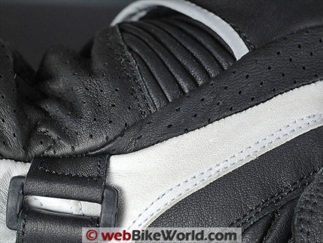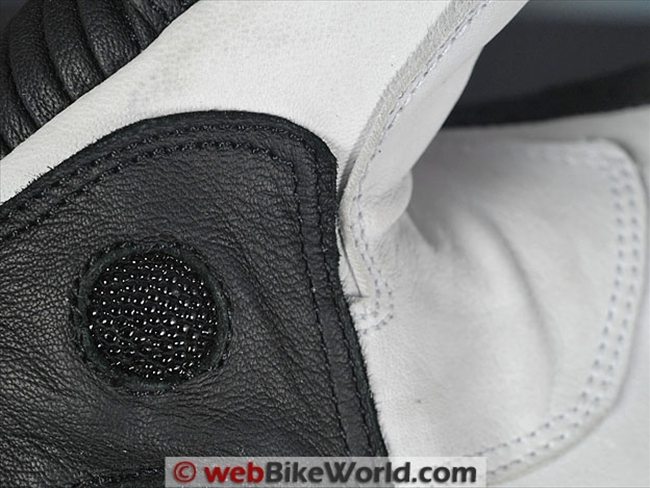 The SL-1 gloves have another unusual feature: titanium main knuckle protectors. This is different from the usual carbon fiber, plastic or even steel protectors often found on motorcycle gloves.