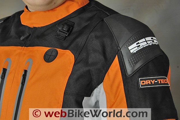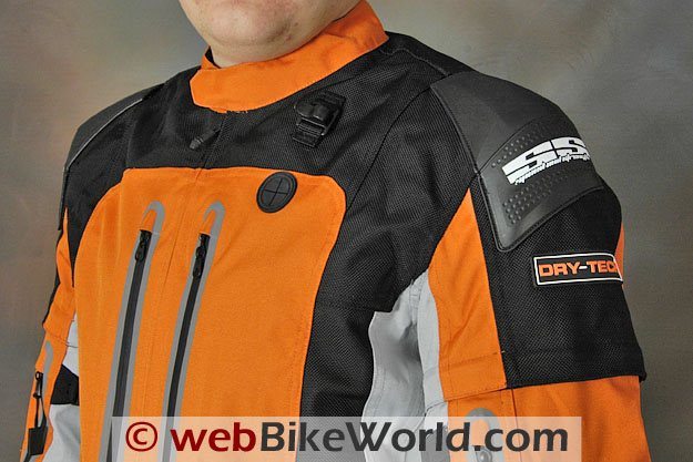 The Hell ‘N Back jacket has external plastic sliders on the shoulders in addition to the internal shoulder armor and also the same thick-feeling back padding used on the Coast is Clear jacket.