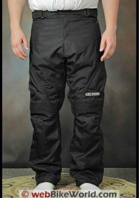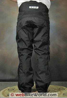The Hell ‘N Back pants seem to run slightly larger, if our example is indicative of the line. These are also a size large, but you can see how bulky they look in the Flash slide show above. To be fair, finding pants that fit correctly is, I think, the most difficult part of outfitting oneself in motorcycle gear.