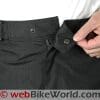 The Hell ‘N Back pants have two snaps at the top, while the Coast is Clear pants have a single snap. Neither is adequate and we feel that all motorcycle pants should also have a more secure metal hook at the waist to help keep the pants on during a crash and slide.