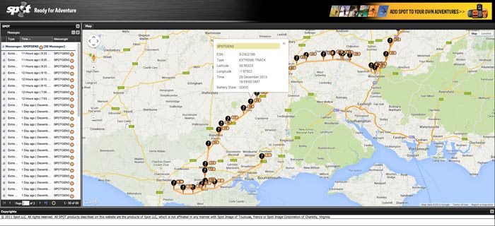The eagle-eyed might spot a straight line on the map where I transported it in its turned-off state. When I arrived home, I found SPOT had, as promised, emailed me updates and GPS locations.