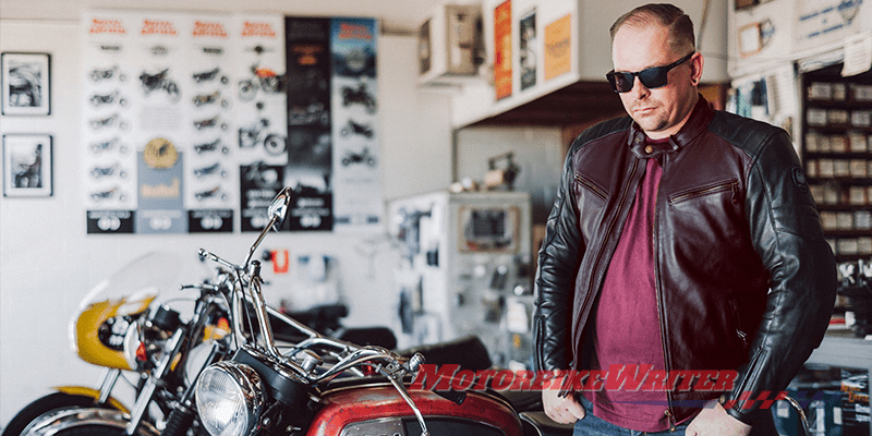 Heritage rider gear like this Chase jacket that reflects neo-classic motorcycles, such as the Ducati Scrambler Full Throttle that Steve rides, represent 45% of the market.
