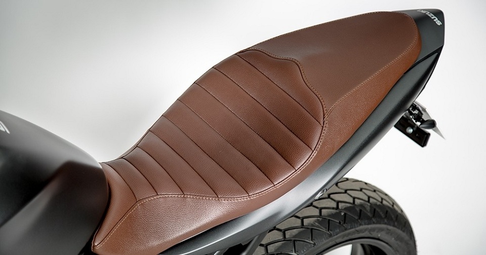 In the case of the Suzuki SV650 scrambler kit, they added a retro brown leather seat, Dunlop Mutant dual-sports tyres, wide LSL handlebars and large metal footpegs.