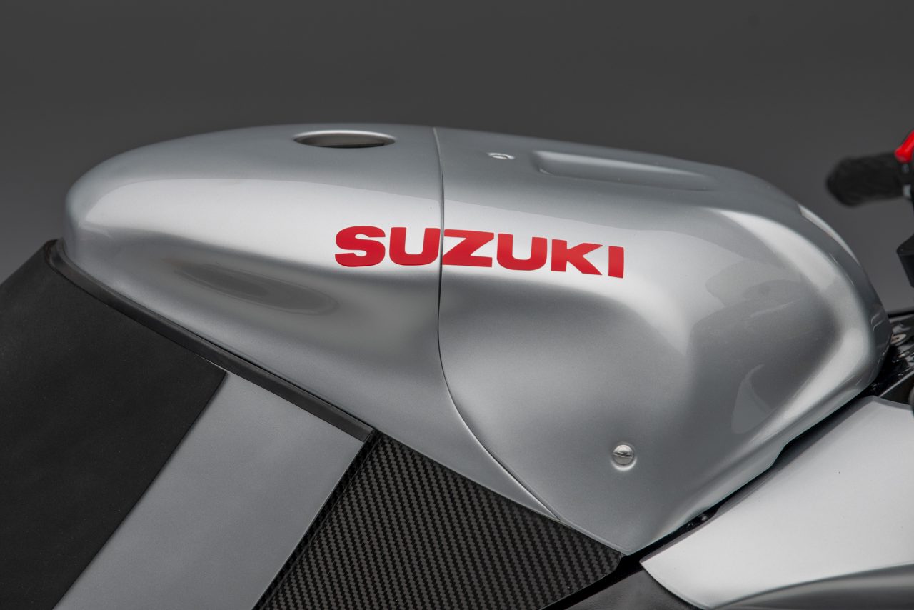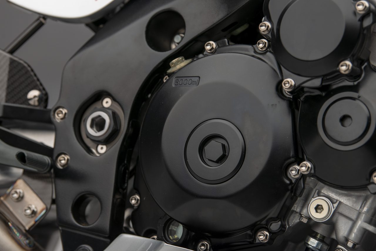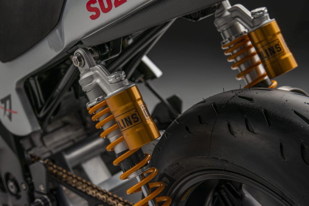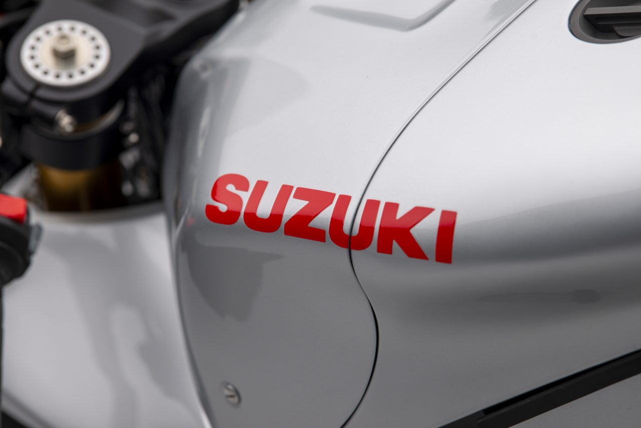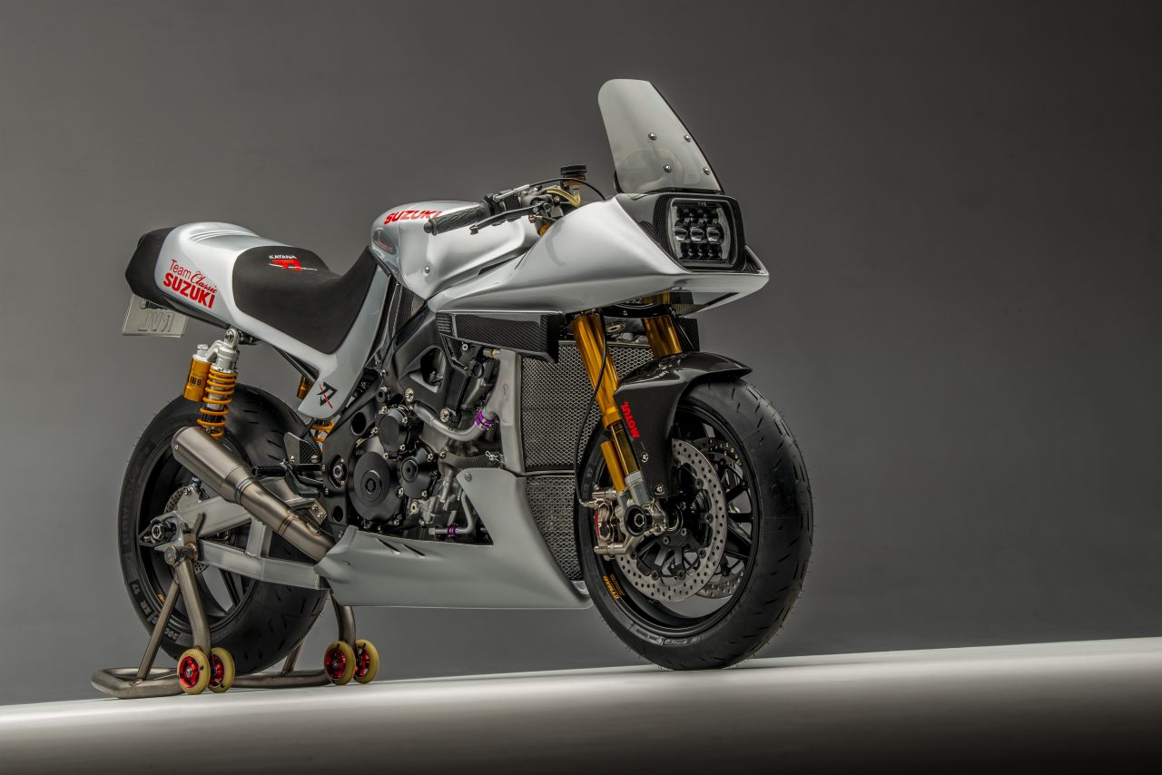 Other specs include homage to the original Katana in the form of Öhlins twin shocks, Alstare WSB headers that connect to a Racefit link pipe and end can.