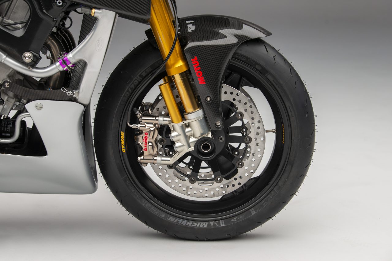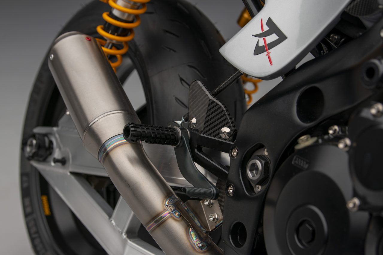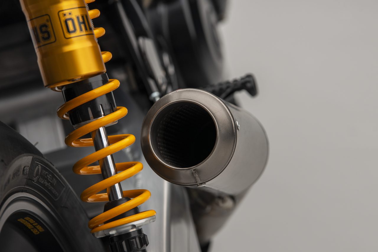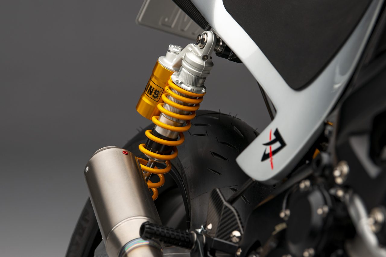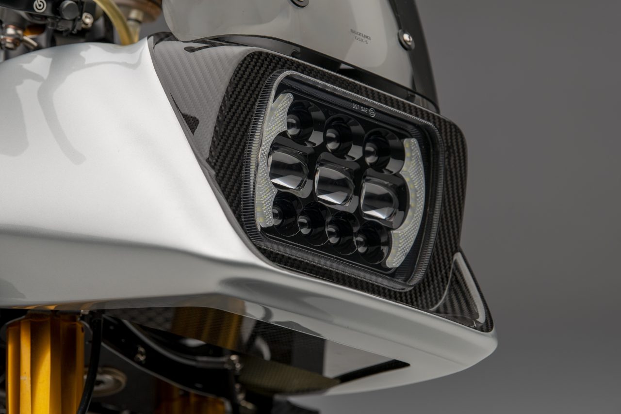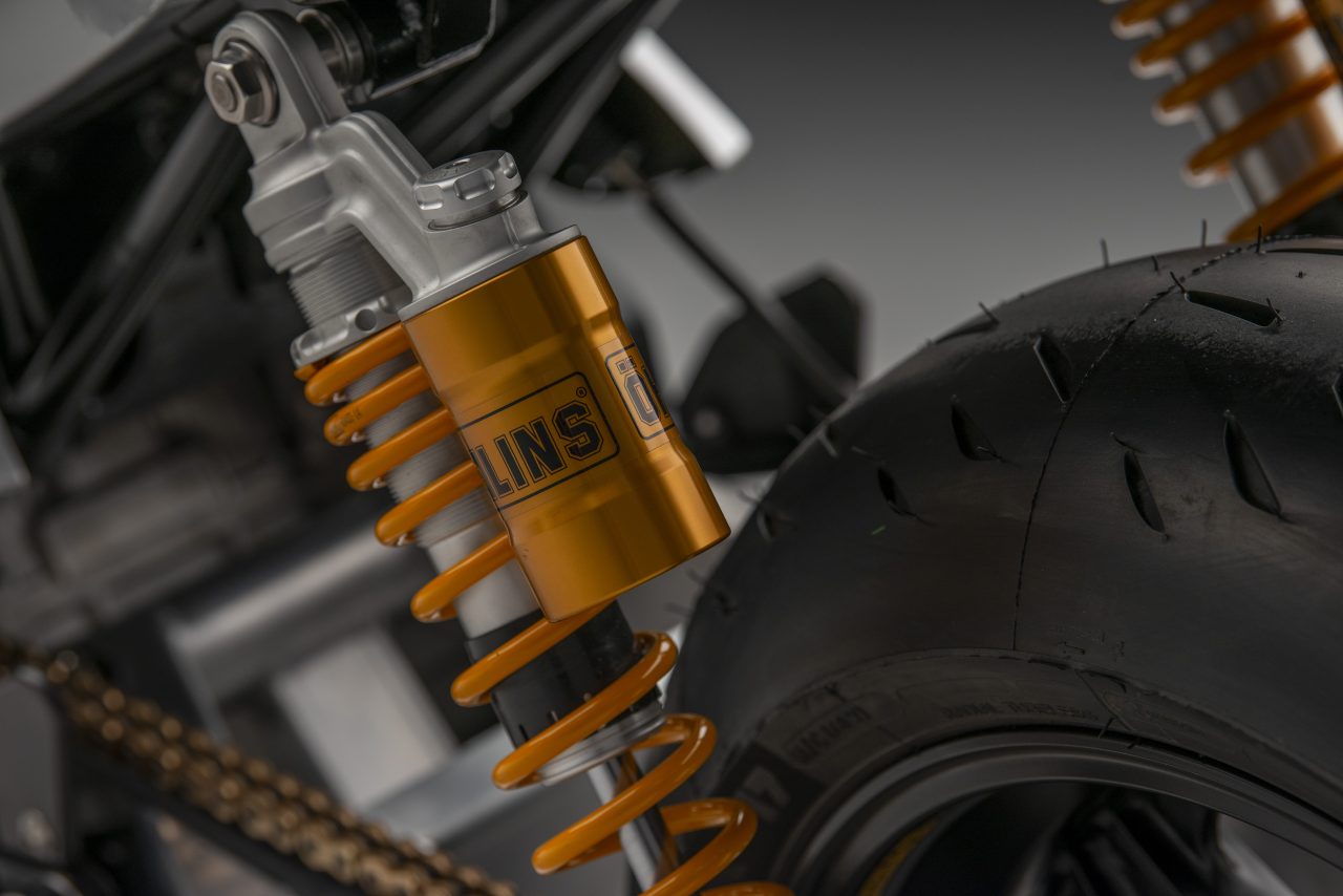 Other specs include homage to the original Katana in the form of Öhlins twin shocks, Alstare WSB headers that connect to a Racefit link pipe and end can.