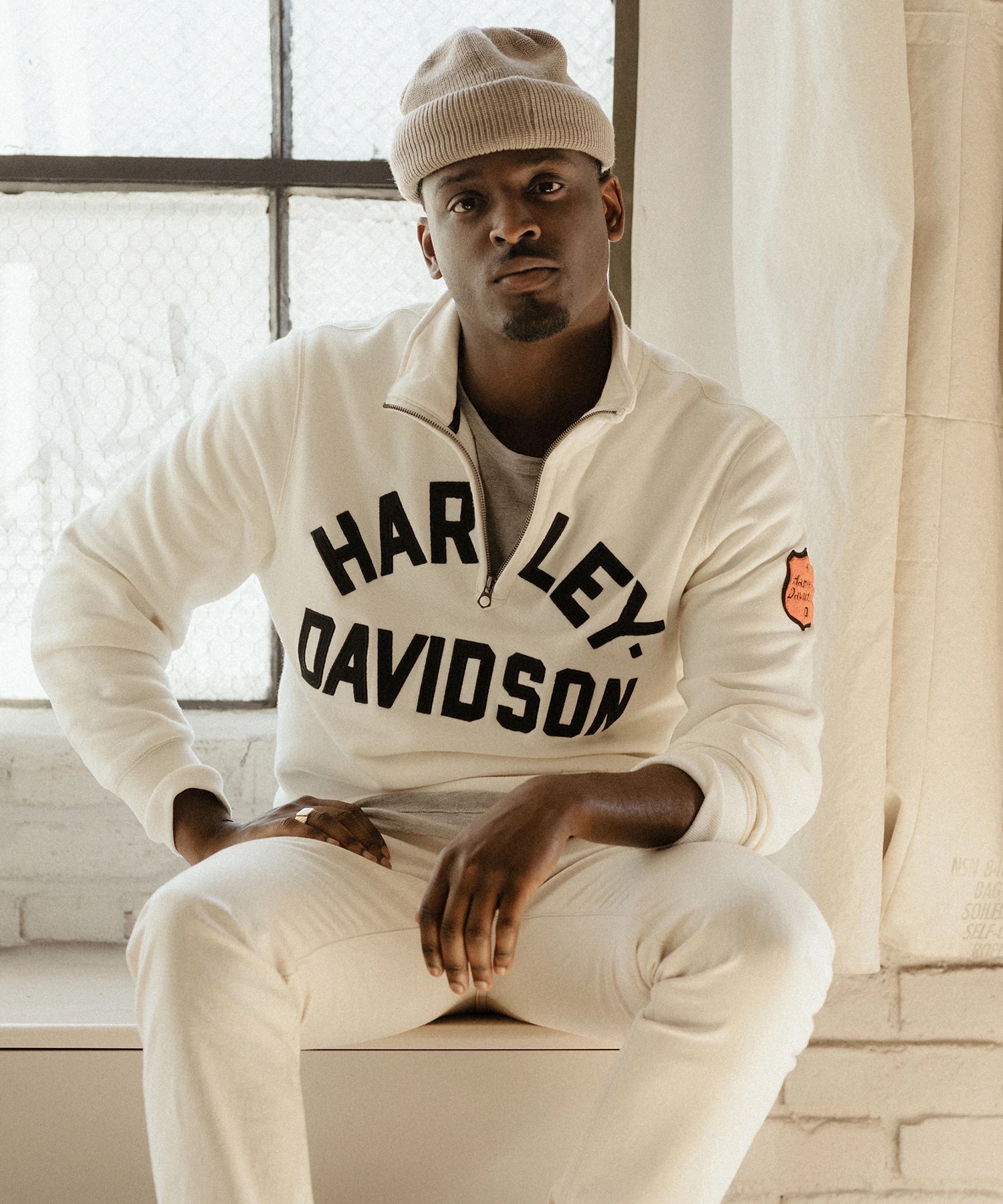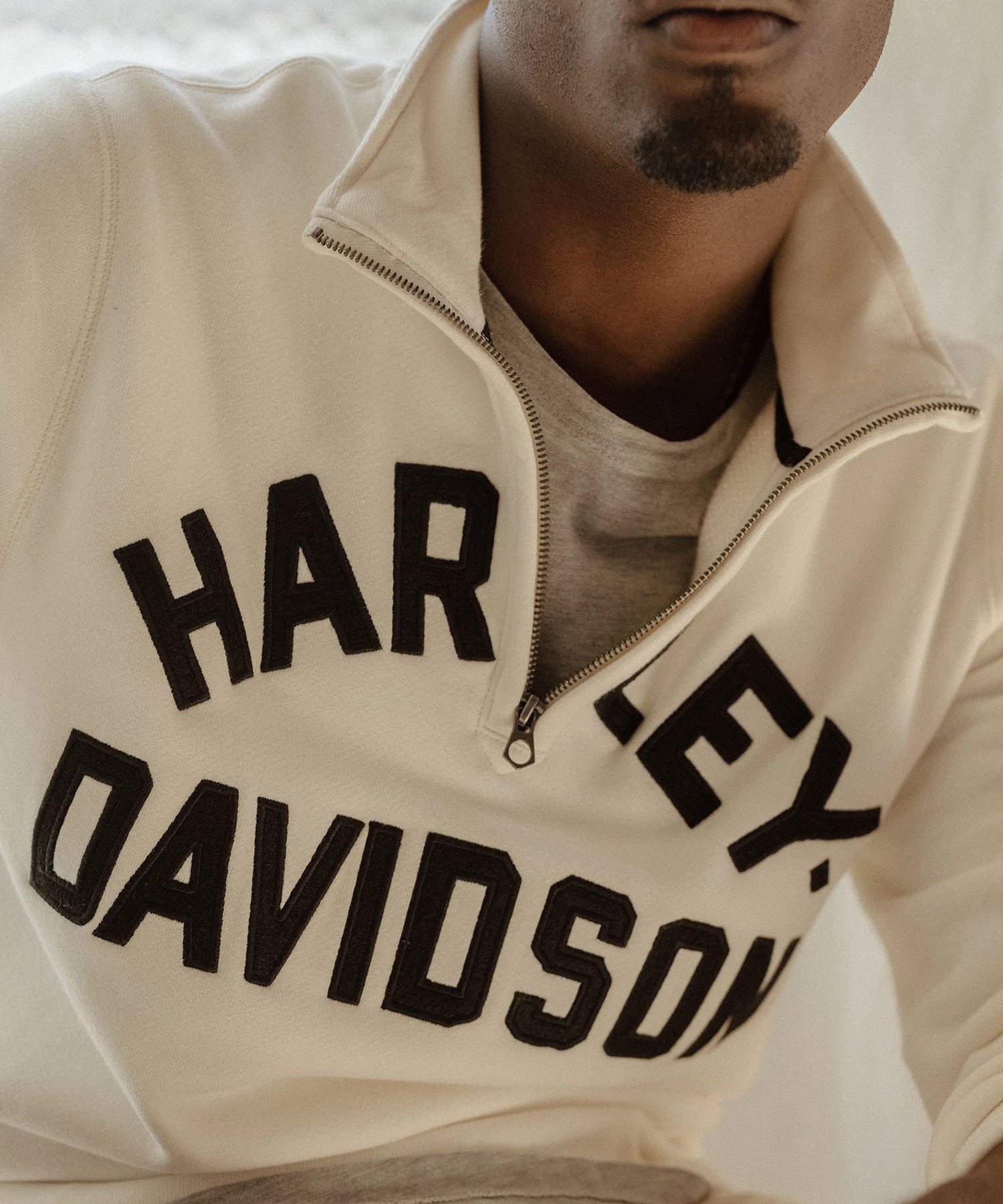 “Harley launched their first catalog in 1912 to sell parts, accessories, and apparel,” Snyder shares in a press release, “and I was really inspired by the technical gear-racing sweaters that reminded me of vintage football jerseys—and the graphics, some which were over a century old and others from The Sixties and Seventies.”