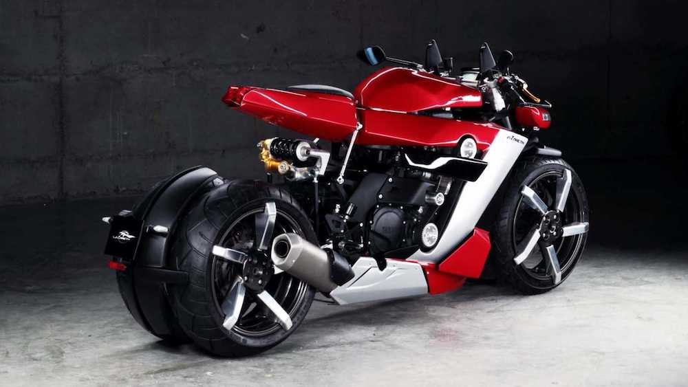 One thing I like about this is that it looks sleek. Most four-wheeled machines that are in any way similar to this look absolutely weird and ridiculous. This just more or less looks like a chunky sportbike with some extra rubber. The bike will stand up on its own, eliminating the need for a kickstand, and it should be quite stable. If you’ve got the money to spend on one of these, I’m a little jealous.