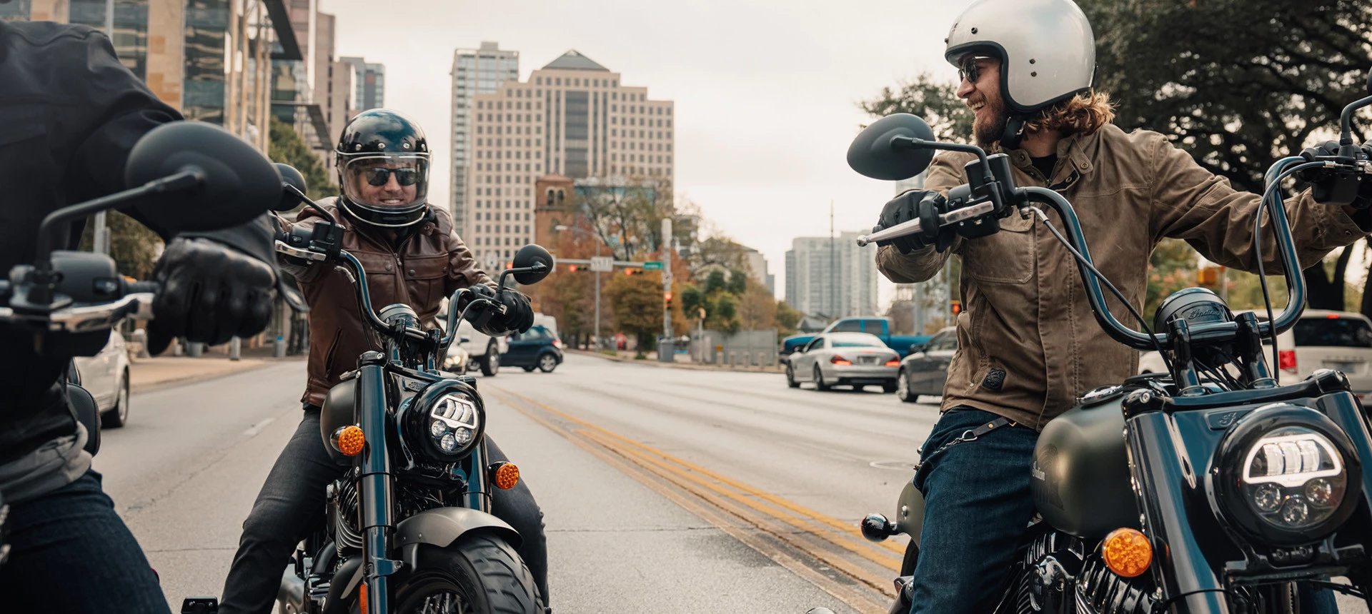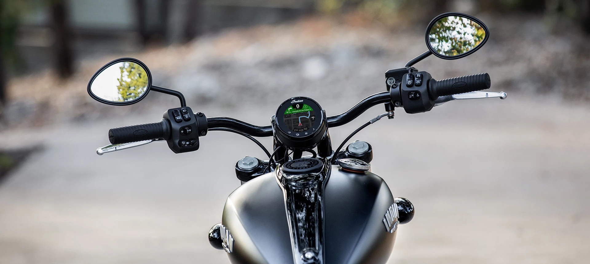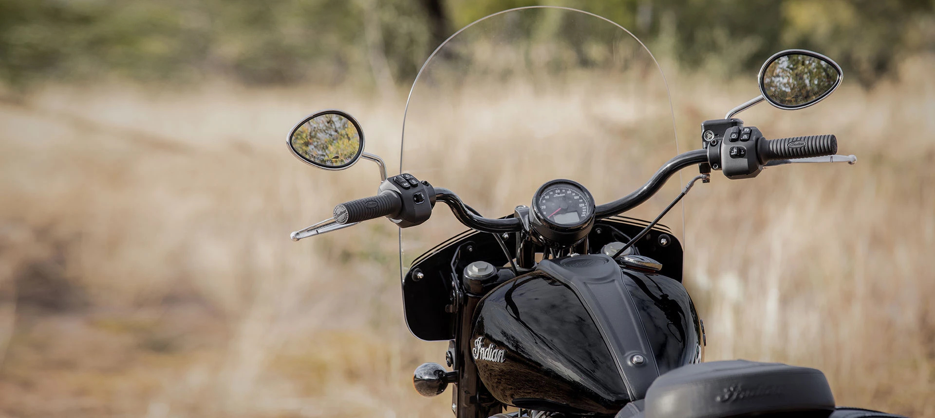 The Chief and Chief Dark Horse have a flat, narrow one; the Bobber and Bobber Dark Horse have a tall bar. The Super Chiefs have a wide, gently curved bar tailor made for long distance touring comfort.