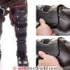 The latter is extremely important as it keeps the guards from bunching up your pants when going into/out of a crouch position on sport bikes. They also curve around the knee well and fit a wide range of riders (I’m 5’10”, 150 lbs. Skinny).