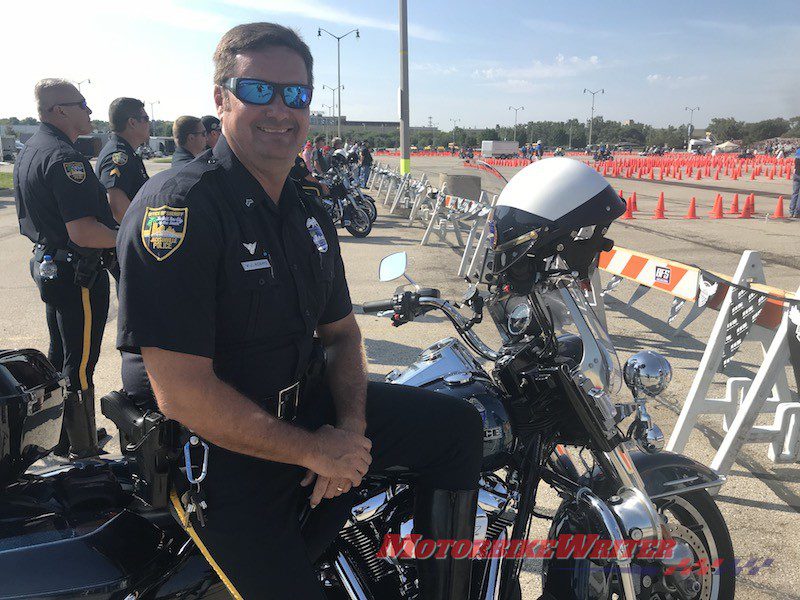 While this was a Harley-Davidson sponsored event and every competitor was on a Harley, almost any bike can do tight full-lock turns. Sportsbikes may be limited with a shallow turning circle and handlebars that jam your fingers against the tank.