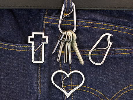 The Keyklipz designs include a teardrop (like a fuel tank), chunky cross, heart and even one with a beer bottle opener!