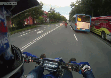 Gifs are funny little videos that make me happy. I know, it’s not 1987 when the first Gif was made and soon after thousands were made popular. But I still see some very funny and very original Motorcycle Gifs. Another thing that I like about a good biker gif is that they have such a diverse production value range, and are still eye-catching. A simple graphic animation that takes a few minutes to edit together with Imovie can be just as awesome as one that was clearly put together by a professional with a budget.