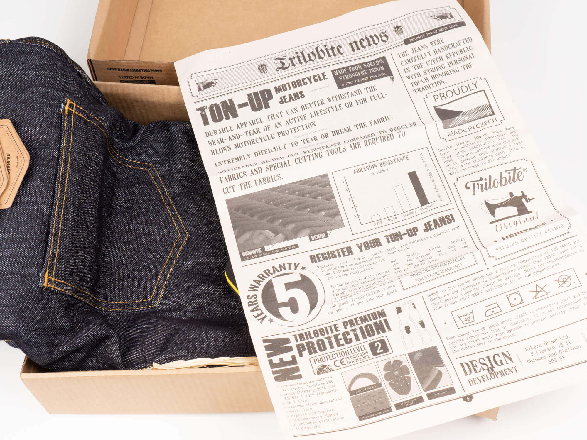 Trilobite, based in the Czech Republic, offers a “single layer” solution in which the denim fabric contains yarns of cotton and a UHMwPE. If you’re not familiar with Trilobite, don’t feel bad, I wasn’t either until this review.
