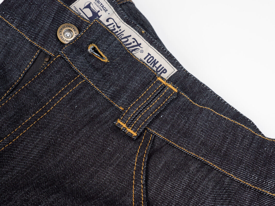 The pair of riding jeans I received for review from Trilobite are the Ton-Up jeans from Trilobite’s Heritage collection. The Heritage series combines modern protective features and a vintage look that should satisfy most “retro” and “vintage” tastes and here the Ton-Up jeans do not disappoint.