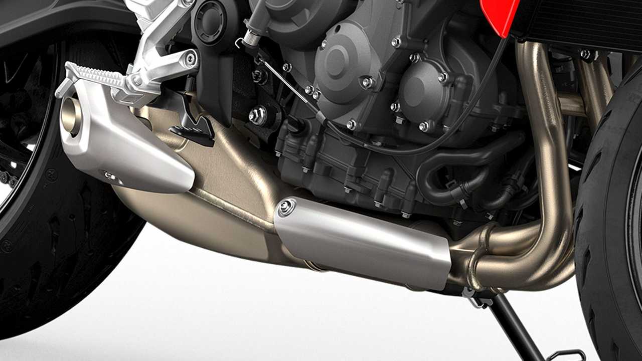 The motorcycle features a new water-cooled inline three-cylinder 660cc engine. That engine makes 80 hp and 47 lb-ft of torque. It is mated to a six-speed transmission that features a slipper clutch and an optional quick-shifter. Triumph says this three-cylinder design provides plenty of low-end torque and higher-end power.