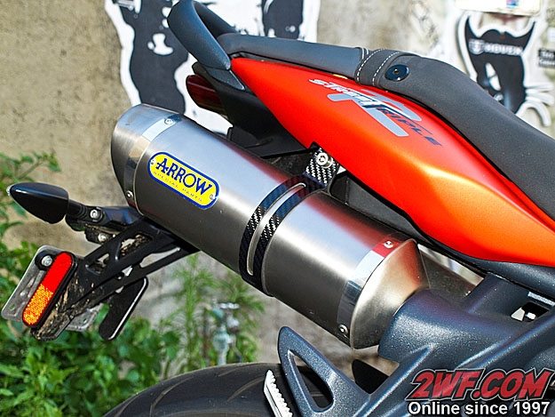 It seems a little odd to be comparing a bike to an exotic car, but the motor sounds like no other I have ridden before and the instant I cracked open the throttle, the only thing that came to my mind is “this thing sounds like a Ferrari!” Of course the trade-off to this vociferous motor is that at cruising speeds, the Arrow exhaust is quite loud for a street bike. If you are not one to wear ear plugs while commuting, this bike, fitted with this exhaust, might have you changing your mind.