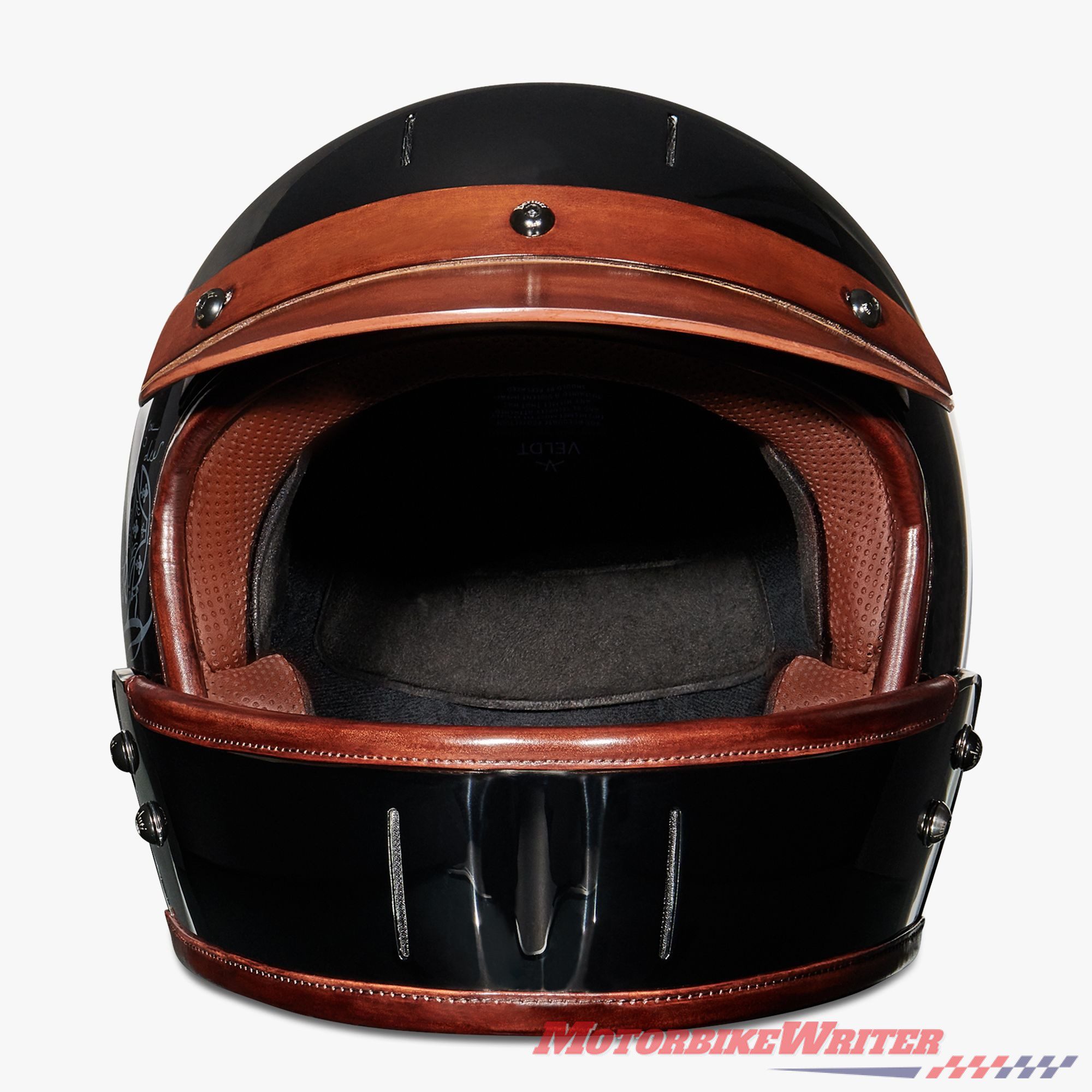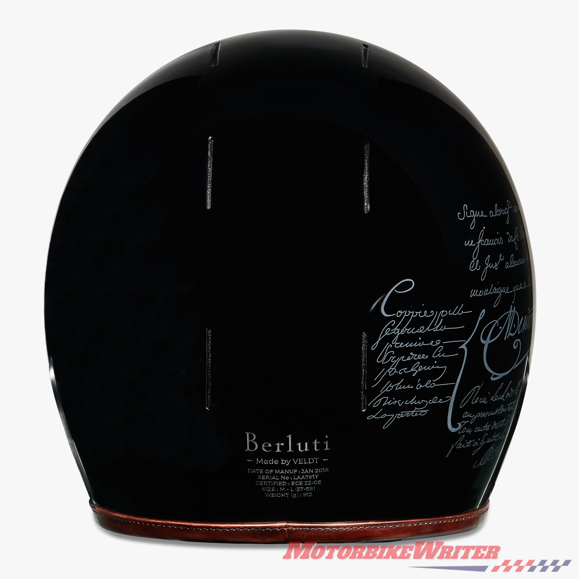 At £2840 ($A6250 delivered to Australia), we believe the Berluti Veldt is the world’s most expensive production motorcycle helmet. It certainly eclipses the next most expensive helmet, the carbon-fibre Arai Corsair-X RC, at $A5600.