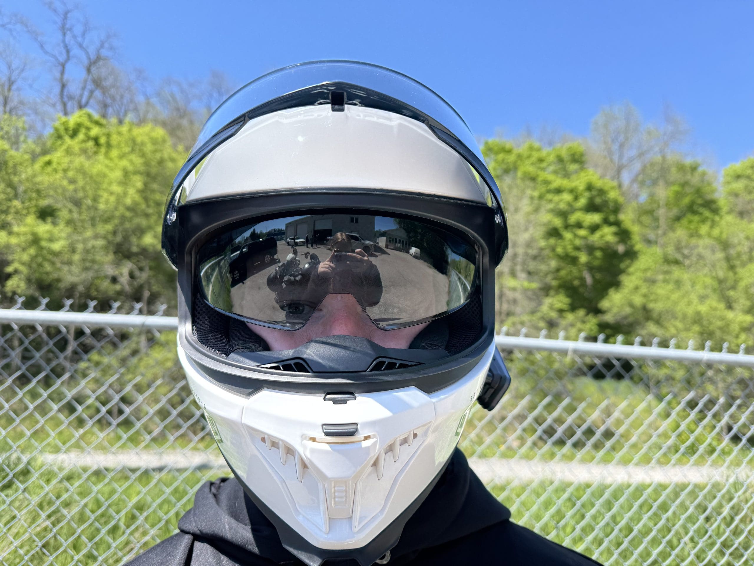 A slim portion of the chin guard and brow is visible, which is to be expected. The overall visual experience of this helmet is great and very immersive. As I like to say, it gives you a sense of being right in the action as opposed to trapped behind a face shield.