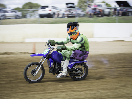 Ellaspede spokesman Hughan Seary says it’s a fun event where riders race flat track on a variety of suitable and not-so-suitable machines is on at the North Brisbane Junior Motorcycle Club’s Mick Doohan Raceway.
