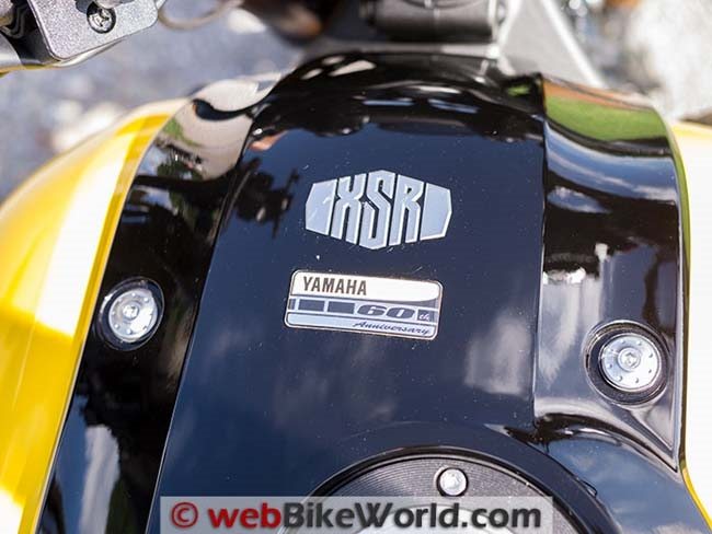 The XSR-900, shown here in the 60th Anniversary livery, is a member of what Yamaha is referring to as their “Sport Heritage” line of bikes.