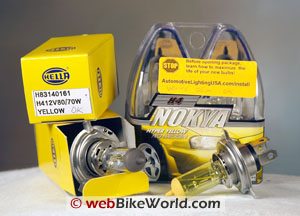 Also, the yellow bulbs are not legal in the U.S., and cranking them up to 110W or so probably would make the motorcycle just that much more of a target for ambitious law enforcement.